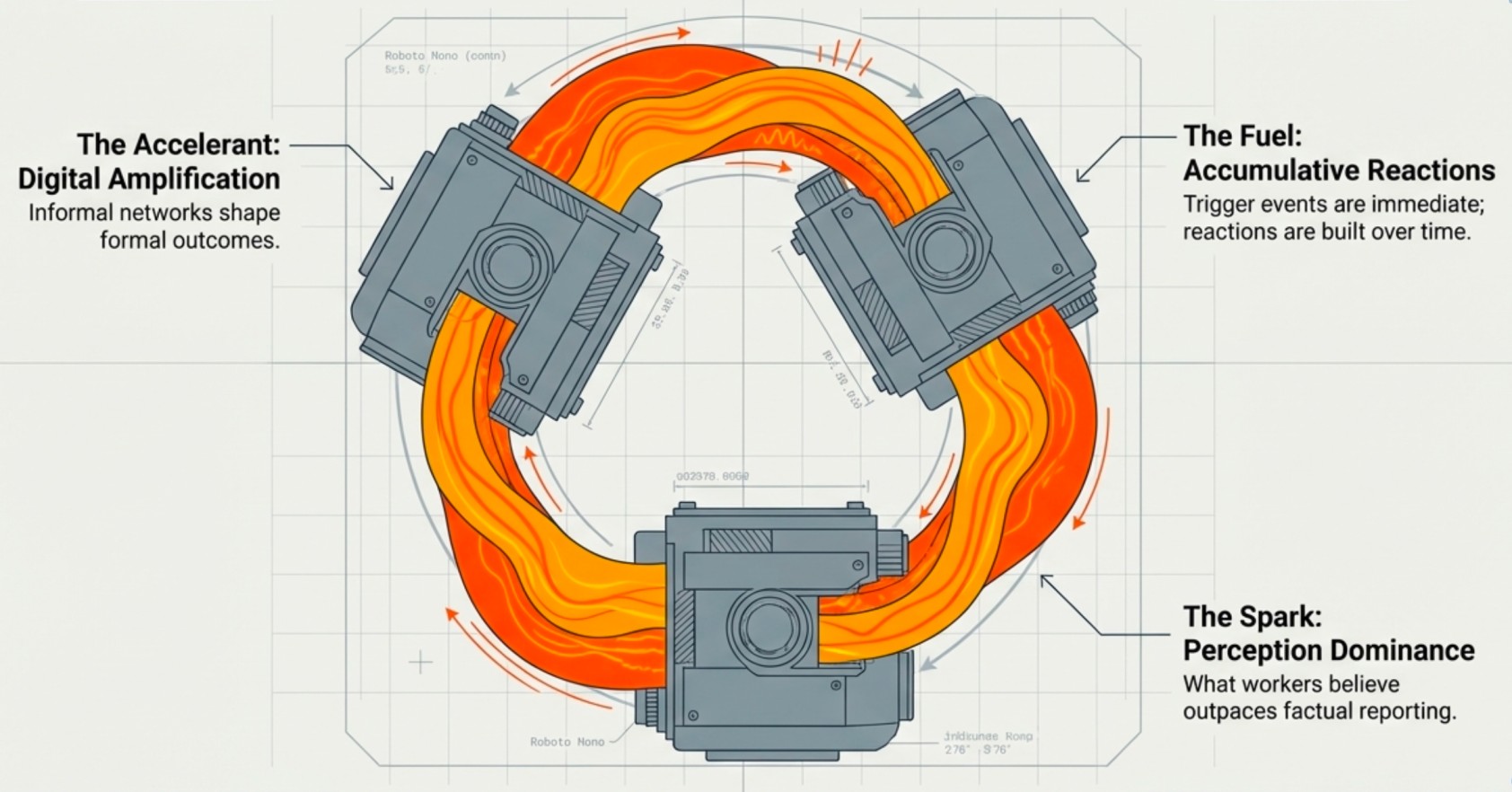 From an Employee Relations (ER) standpoint, what is striking is not merely the occurrence of unrest, but the speed and scale of escalation.